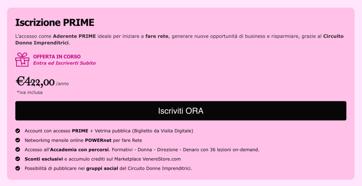 Selezione dei prodotti, servizi e corsi inseriti in Venere Store dalle aderenti al Circuito Donne Imprenditrici