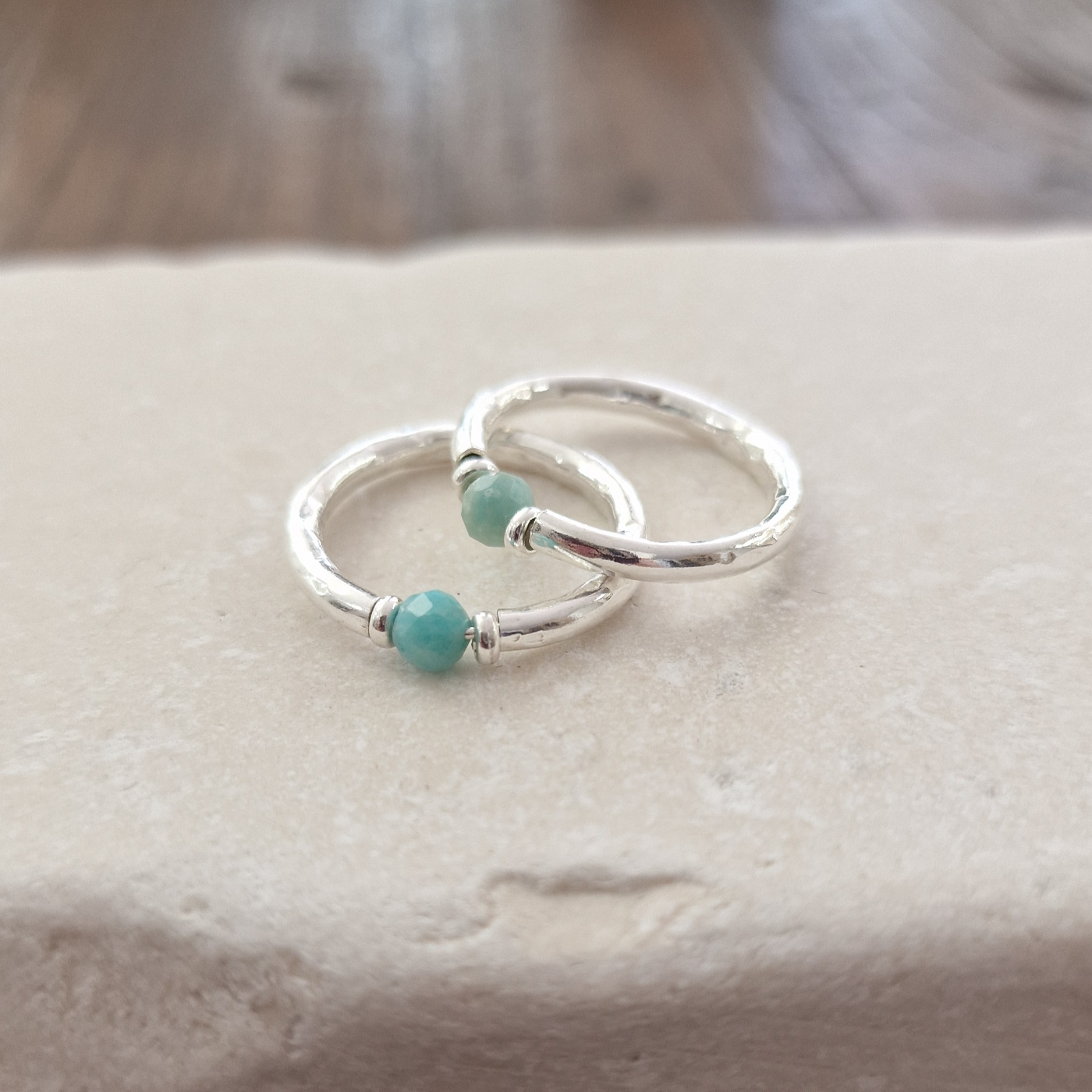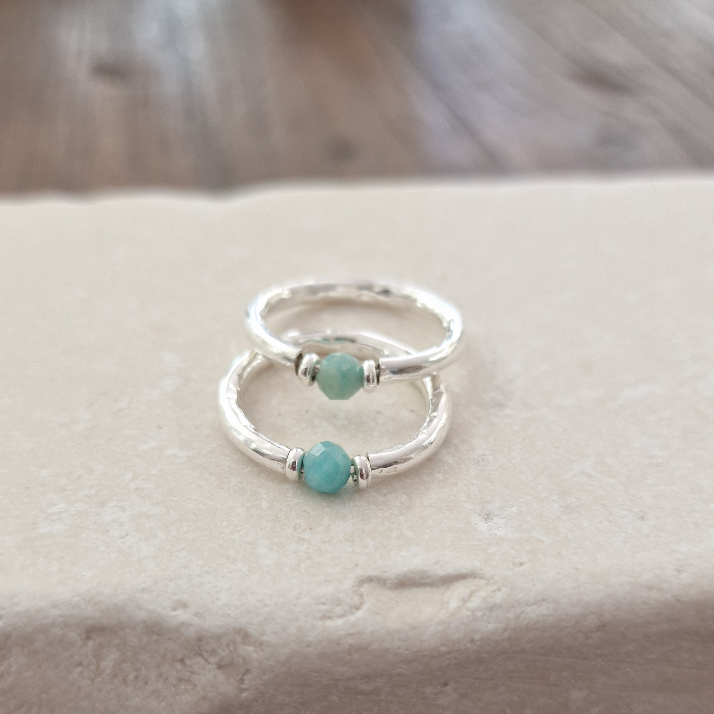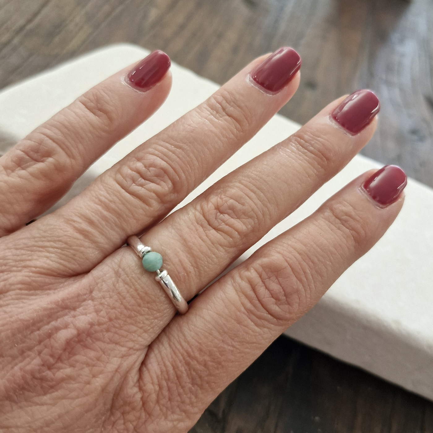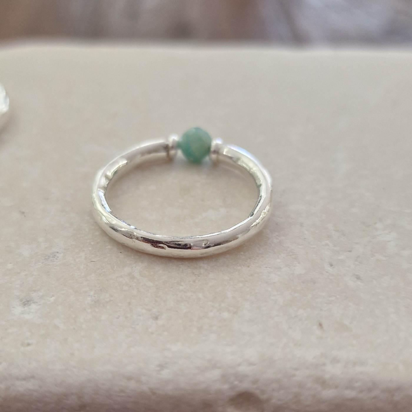 Anello Maui Cherì in Amazzonite e Argento Naturale.